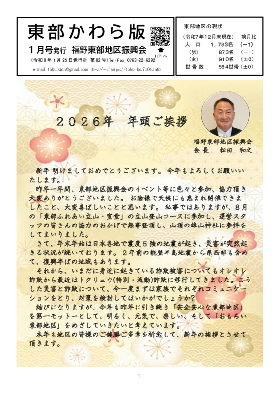 東部かわら版1月号を発行しました。 福野東部地区振興会